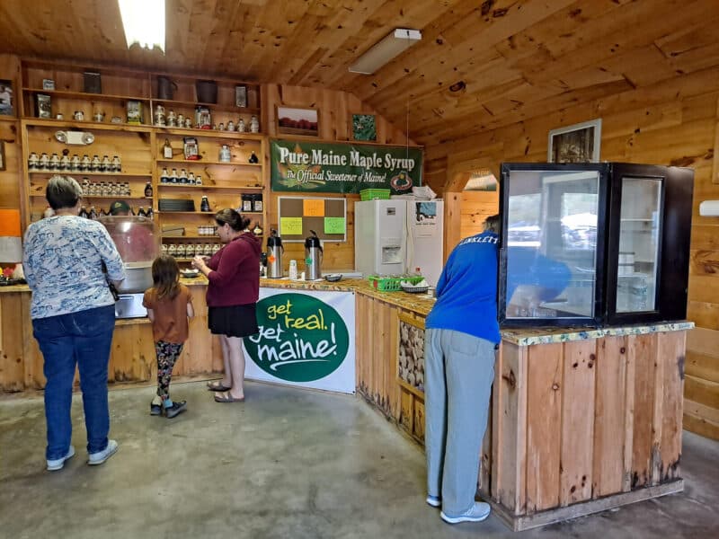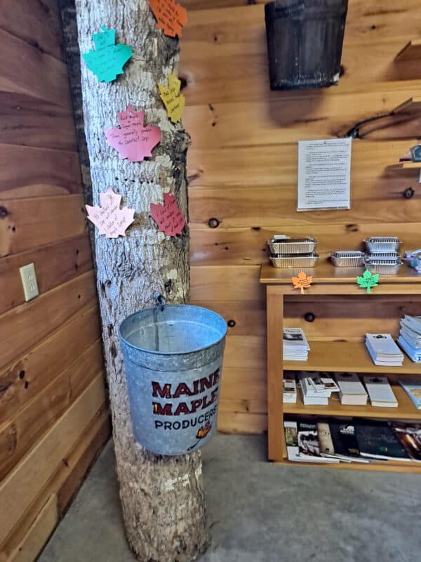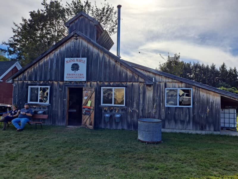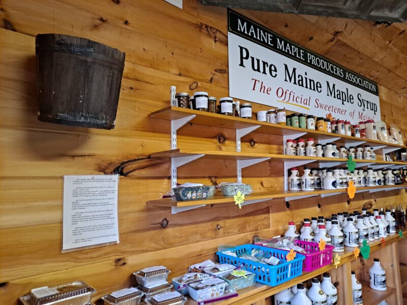 The Farmington Fair Sugar House showcase maple production as well as maple products for sale.